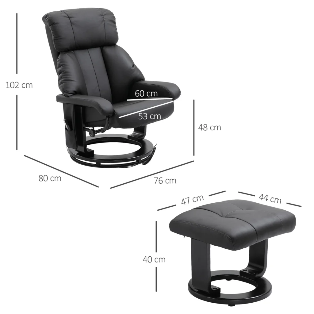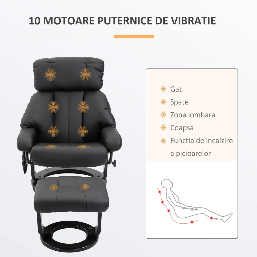 Fotoliu Rabatabil de Masaj HOMCOM cu Suport puf pentru picioare si Telecomanda, Negru
