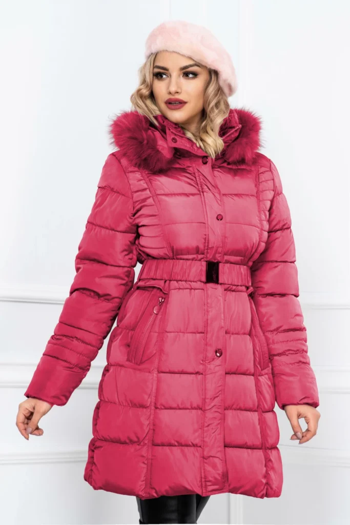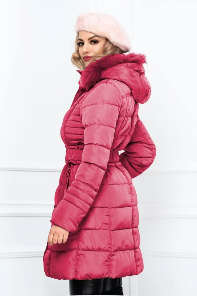 Geaca lunga matlasata culoarea roz cu gluga detasabila si blanita