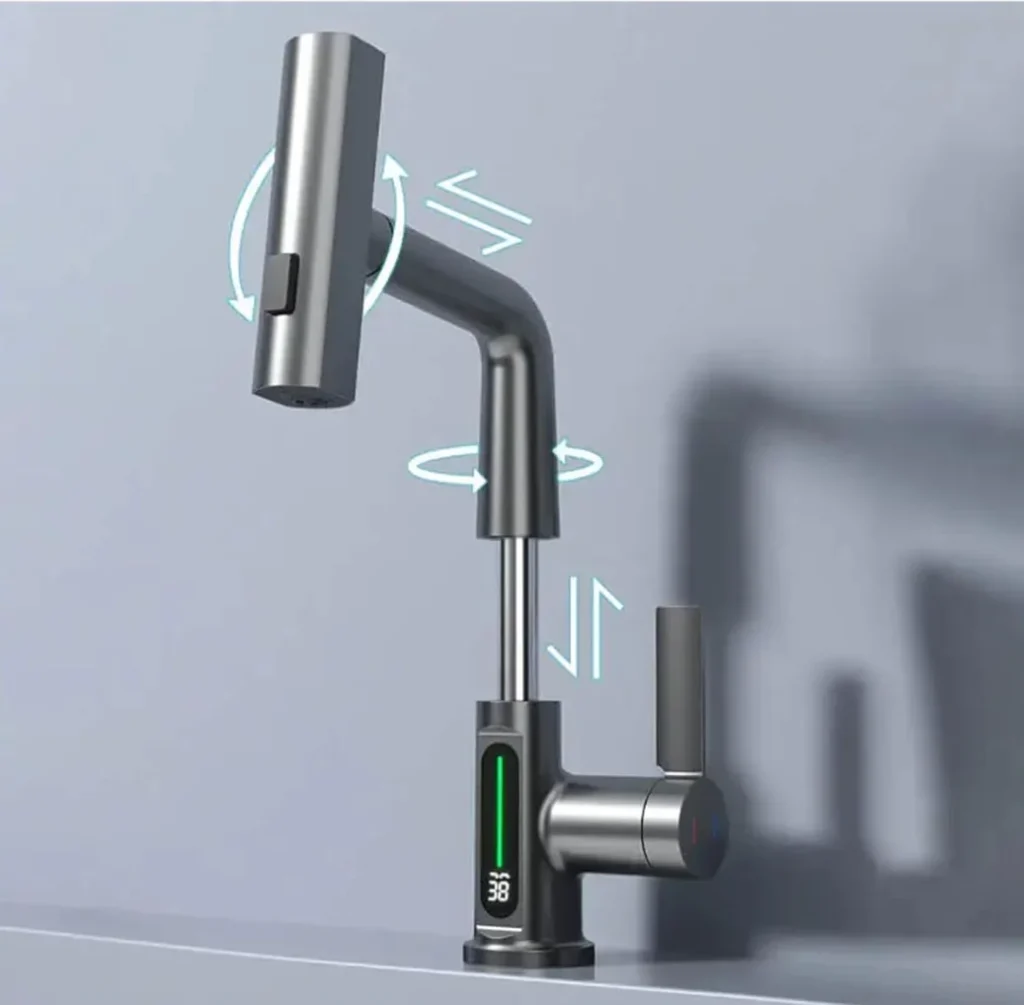Baterie baie/bucatarie cu display temperatura, curgere tip cascada, jet sau spray, dus extractibil