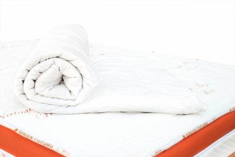 - Protecție saltea din nanofibră. Umplutura acesteia este singura fibră sintetică care se apropie foarte mult de proprietățile pufului de gâscă. Astfel tu poți să te bucuri de un confort termic adecvat în timpul somnului.